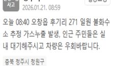 충북 청주시 오창읍서 불화수소 추정 가스누출이 일어났다. 청주시는 21일 "오늘 오전 8시 40분께 오창읍 후기리 271 일원- 11시간전