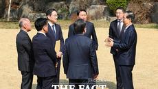 '4대 그룹' 총수 만난 韓 대행 "기업 투자 혁신 장애물 과감히 걷어낼 것" [TF사진관]
