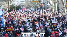 '탄핵 선고 D-3'… 철야 집회 이어가는 尹 지지자들 [TF사진관]