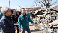 산불피해 마을과 임시주거시설 점검하는 고기동 직무대행 [TF사진관]