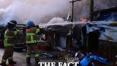 [더팩트ㅣ이새롬 기자] 16일 오전 서울 강남구 구룡마을 4지구에서 화재가 발생한 가운데, 소방관들이 화재 현장에 물을 뿌리고- 15시간전