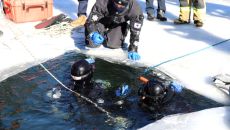 영주소방서, 단산저수지서 얼음 붕괴 상황 재현…혹한 속 구조 훈련