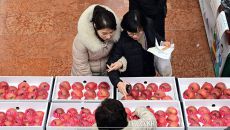 사과 선물세트 살펴보는 정부서울청사 직원들 [포토]
