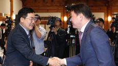 [이용우 기자] (서울=국제뉴스) 우원식 국회의장과 최태원 대한상공회의소 회장, 박찬대 더불어민주당 당대표 직무대행 겸 원내대- 2025-04-22 15:34
