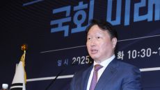 [이용우 기자] (서울=국제뉴스) 최태원 대한상공회의소 회장이 22일 오전 서울 여의도 국회 사랑재에서 열린 국회 미래산업포럼- 2025-04-22 14:05