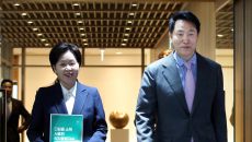 [이용우 기자] (서울=국제뉴스) 양향자 국민의힘 대선 경선 후보가 22일 오전 오세훈 서울시장을 예방,면담하기위해 오시장과- 2025-04-22 12:58