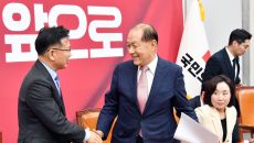 [이용우 기자] (서울=국제뉴스) 황우여(오른쪽) 국민의힘 선거관리위원장이 22일 오후 서울 여의도 국회에서 제21대 대통령- 2025-04-22 19:25