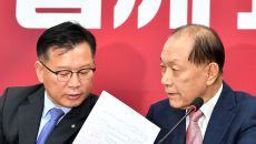 [이용우 기자] (서울=국제뉴스) 황우여 국민의힘 선거관리위원장과 이양수 사무총장이 22일 오후 서울 여의도 국회에서 대통령- 2025-04-22 19:25