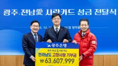 [류연선 기자] (광주=국제뉴스) 류연선 기자 = 광주은행이 지역 특화 카드 이용 수익으로 조성한 고향사랑기부금을 전남도에 기- 1시간전
