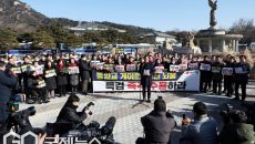 靑 앞에 선 국힘 의원들 '쌍특검 수용 촉구'