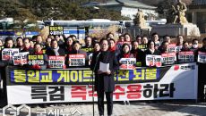 [이용우 기자] (서울=국제뉴스) 송언석 국민의힘 원내대표가 20일 오전 서울 중로구 청와대 분수대 앞에서 열린 통일교 게이트- 1시간전