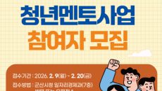 [조판철 기자] (군산=국제뉴스) 조판철 기자 = 군산시가 '2026년 공공부문 청년멘토사업' 참여자 18명을 20일까지 모집- 6시간전