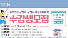 [조판철 기자] (군산=국제뉴스) 조판철 기자 = 군산시 여성사회대학이 오는 2월 24일부터 27일까지 상반기 프로그램 수강생- 6시간전