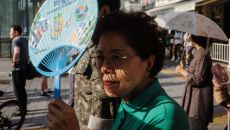 美평화연구소 앞 항의 시위대