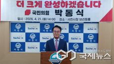 [구정욱 기자] (사천=국제뉴스) 구정욱 기자 = 국민의힘 사천시장 본경선에서 승리한 박동식 시장이 21일 사천시청 브리핑룸에- 2026-04-21 14:03