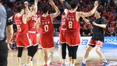 SK 선수들이 13일 잠실학생체육관에서 열린 2024-2025 프로농구 LG와의 챔피언결정전 5차전에서 LG에 86-56으로- 2025-05-13 21:05