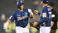 NC 손아섭이 17일 서울 잠실구장에서 열린 2025 KBO리그 LG와 경기 8회초 2사1,2루 1타점 좌중간 안타를 친 후- 2025-06-17 21:03