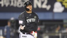 LG 문보경이 17일 서울 잠실구장에서 열린 2025 KBO리그 NC와 경기 8회말 1사 타구가 높게 뜨자 아쉬워하고 있다.- 2025-06-17 21:18
