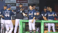 NC 이호준 감독이 17일 서울 잠실구장에서 열린 2025 KBO리그 LG와 경기 9회초 1사 김휘집이 좌월홈런을 친 후 덕아- 2025-06-17 21:27