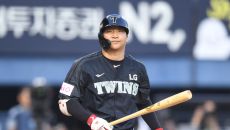LG 문보경이 17일 서울 잠실구장에서 열린 2025 KBO리그 NC와 경기 3회말 2사1,2루 헛스윙 삼진아웃을 당한 후 아- 2025-06-17 19:40
