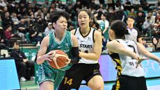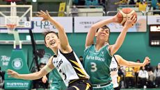하나은행 진안(왼쪽)이 9일 부천체육관에서 열린 2025-2026 여자프로농구 KB스타즈와 경기에서 KB스타즈 강이슬의 수비를- 2시간전