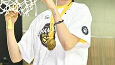 [포토]우승 기념 그물망 자르는 KB스타즈 허예은