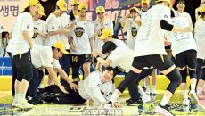 [포토]KB스타즈 김완수 감독, 선수들의 거친 손길에...
