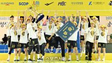 [포토]통합 우승 트로피 들어올리며 기뻐하는 KB스타즈