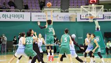 [ST포토] 점프볼 하는 하나은행과 신한은행