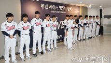 [스포츠투데이 권광일 기자] 15일 서울 잠실야구장에서 열린 두산 베어스 시무식에서 2026년 신인 선수들이 신년 인사를 하고- 9시간전