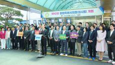 [창원=뉴시스]강경국 기자 = 경남 창원시의회 의원들이 14일 NC 다이노스에 홈구장(창원NC파크)으로 조속히 복귀해 줄 것을- 2025-05-14 15:10