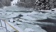 [서울=뉴시스]최현호 기자 = 중국의 한 강변 관광지에서 강줄기를 따라 갑자기 대량의 얼음덩어리와 물이 쏟아져 내려와 관광객들- 20시간전