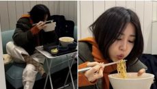 박하선, 대기실서 명품 양말 신고 라면 흡입
