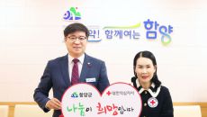 [함양=뉴시스] 서희원 기자 = 경남 함양군(군수 진병영)은 19일 군수실에서 나눔문화 확산과 인도주의 활동에 동참하기 위해- 50분전