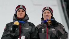 [서울=뉴시스] 김진엽 기자 = 오스트리아의 얀 호얼과 슈테판 엠바허가 동계올림픽 사상 첫 스키 점프 남자 슈퍼 단체전 챔피언- 2026-02-17 08:09