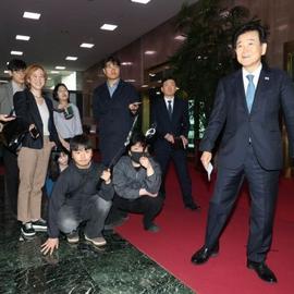 북한 핵시설 발언관련 취재진 질의받는 정동영 장관