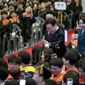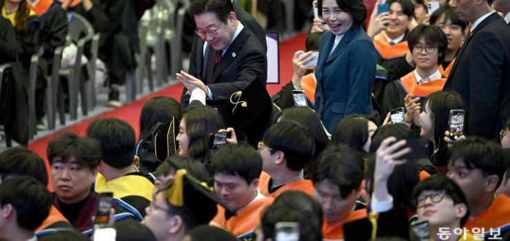 카이스트 찾은 李대통령, ‘입틀막’ 대신 ‘하이파이브’
