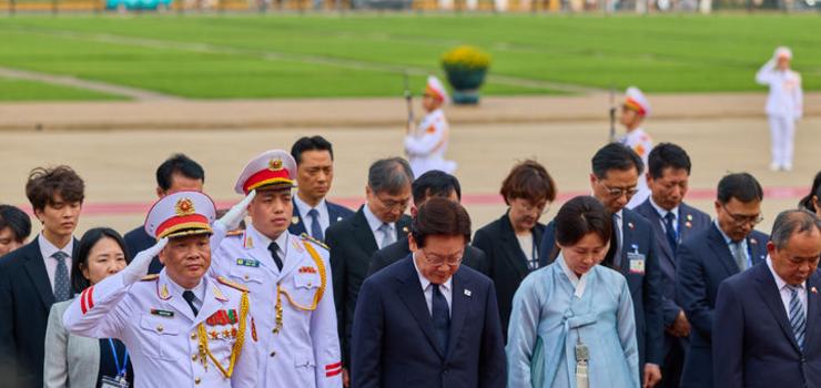 베트남 하노이 호치민 묘소 방문한 이재명 대통령과 김혜경 여사