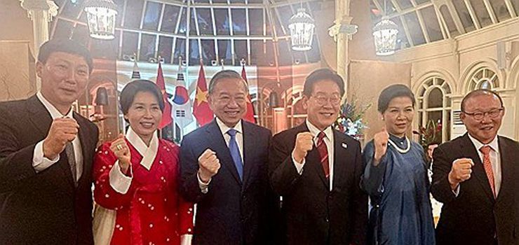 이재명 대통령 부부, 베트남 축구 전·현직 레전드 감독과 기념사진