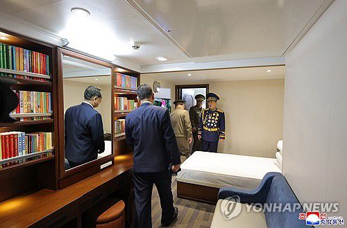 (평양 조선중앙통신=연합뉴스) 김정은 북한 국무위원장이 5일 무장장비전시회 참관 일정으로 5천t급 신형 구축함 '최현호'를 돌아봤다고 조선중앙통신이 6일 보도했다.2025.10.6 [국내에서만 사용가능. 재배포 금지. For Use Only in the Republic of Korea. No Redistribution] nkphoto@yna.co.kr ▶제