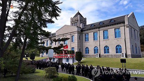 (서울=연합뉴스) 김정은 북한 국무위원장이 노동당 창건 80주년을 앞두고 지난 8일 당창건사적관을 방문해 기념연설을 했다고 조선중앙TV가 9일 보도했다. [조선중앙TV 화면] 2025.10.9 [국내에서만 사용가능. 재배포 금지. For Use Only in the Republic of Korea. No Redistribution] nkphoto@yna.c