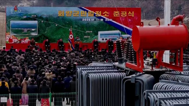 [서울=뉴시스] 김정은 북한 국무위원장이 지난 20일 강원도 회양군민발전소 준공식에 참석했다고 조선중앙TV가 21일 보도했다. (사진=조선중앙TV 캡처) 2025.11.21. photo@newsis.com *재판매 및 DB 금지 [사진 영상 제보받습니다] 공감언론 뉴시스가 독자 여러분의 소중한 제보를 기다립니다. 뉴스 가치나 화제성이 있다고 판단되는 사진