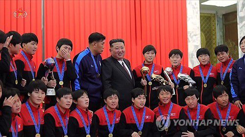 김정은, 'U-17 여자 월드컵 우승' 선수들과 사진 촬영