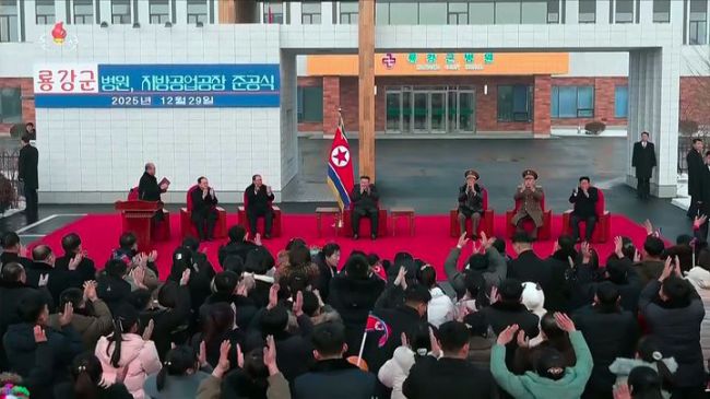 [서울=뉴시스] 김정은 북한 국무위원장이 지난 29일 '지방발전 20x10 정책'으로 세워진 남포시 룡강군(용강군) 병원에서 열린 준공식에 참석했다고 30일 조선중앙TV가 보도했다. (사진=조선중앙TV 캡처) 2025.12.30. photo@newsis.com *재판매 및 DB 금지 [사진 영상 제보받습니다] 공감언론 뉴시스가 독자 여러분의 소중한 제보를