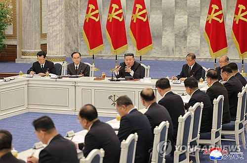 (평양 조선중앙통신=연합뉴스) 김정은 총비서가 지난 25일 평양 당중앙위원회 본부에서 노동당 중앙위원회 제9기 제1차 정치국회의를 지도했다고 조선중앙통신이 26일 보도했다. 2026.2.26 [국내에서만 사용가능. 재배포 금지. For Use Only in the Republic of Korea. No Redistribution] nkphoto@yna.co