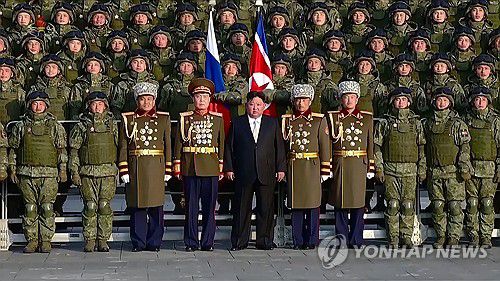 (서울=연합뉴스) 김정은 북한 국무위원장이 지난 27일 당 제9차대회 기념 열병식 참가 부대 지휘관·병사들을 만나 기념사진을 찍었다고 조선중앙TV가 28일 보도했다. [조선중앙TV 화면] 2026.2.28 [국내에서만 사용가능. 재배포 금지. For Use Only in the Republic of Korea. No Redistribution] nkphot