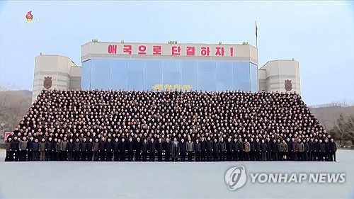 김정은, 상원시멘트기업소 노력혁신자·공로자와 기념촬영