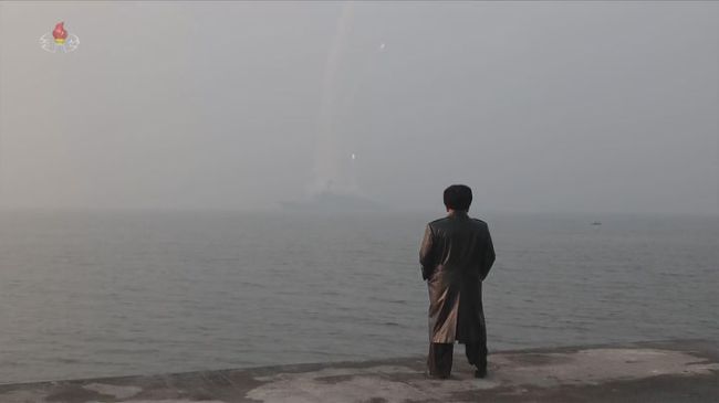 [서울=뉴시스] 북한 조선중앙TV는 김정은 국무위원장이 지난 3~4일 취역을 앞둔 5000t급 신형 구축함 '최현호'를 살펴보고 해상대지상(함대지) 전략순항미사일 시험발사를 참관했다고 5일 보도했다. (사진=조선중앙TV 캡처) 2026.03.05. photo@newsis.com *재판매 및 DB 금지 [서울=뉴시스] 박영환 기자 = 이란이 미국과 이스라엘의