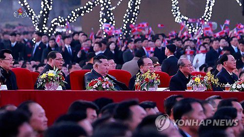 (서울=연합뉴스) 김정은 북한 국무위원장이 지난 23일 최고인민회의 제15기 대의원들과 함께 만수대기슭에서 제15기 제1차회의 성과를 축하하는 예술인들의 공연을 관람했다고 조선중앙TV가 24일 보도했다. [조선중앙TV 화면] 2026.3.24 [국내에서만 사용가능. 재배포 금지. For Use Only in the Republic of Korea. No R
