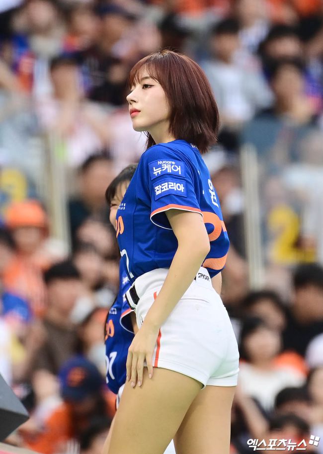 8일 오후 서울 송파구 잠실야구장에서 열린 '2025 신한 SOL Bank KBO리그' 한화 이글스와 LG 트윈스의 경기, 한화 치어리더 하지원이 멋진 공연을 선보이고 있다. 박지영 기자 jypark@xportsnews.com